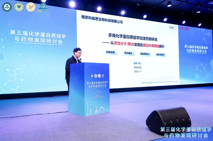 2025 年 11 月 14-16 日,第三届化学蛋白质组学与药物发现国际研讨会(ISCPDD 2025)在广州阳光酒店圆满落幕。本次大会由暨南大学主办,暨南大学药学院、生物活性分子与成药性优化全国重点实验室承办,围绕化学蛋白质组学新兴技术、新型治疗靶点发现等四大核心专题,汇聚了全球顶尖科研院校、医疗机构及药企的专家学者,搭建了技术交流与产业合作的高端平台。科络思生物携核心技术平台精彩亮相 03 号展位,与行业同仁深度对话,共话药物研发新趋势。