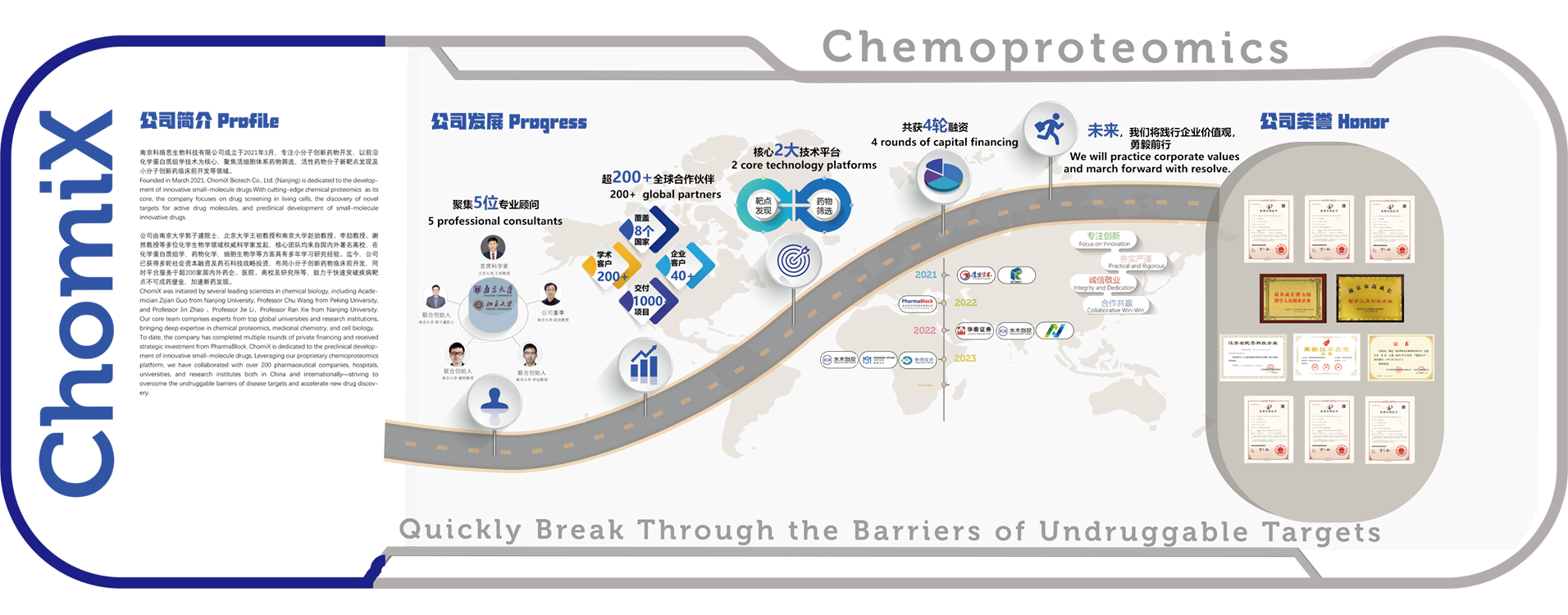 公司由南京大学郭子建院士、北京大学王初教授和南京大学赵劲教授、李劼教授、谢然教授等多位化学生物学领域权威科学家发起。首席科学家王初教授是中国最早一批开展化学蛋白质组学研究的科学家之一,博士毕业于David Baker教授(2024年诺贝尔化学奖获得者)实验室,博士后工作于美国Scripps研究所、著名化学蛋白质组学奠基人Benjamin Cravatt教授(2014年当选美国科学院院士)实验室。2013年底,王初教授回到北京大学,创建国内首个化学蛋白质组学实验室,填补了国内在该技术领域的研究空白。公司核心运营团队来自北京大学、南京大学、中国科学院、美国洛克菲勒大学等国际顶尖科研机构,具备深厚的跨学科背景和10年以上新药研发经验。团队科研成果频见于Nature, Cell, Nat. Chem., Nat. Chem. Biol., JACS等国际顶级期刊。